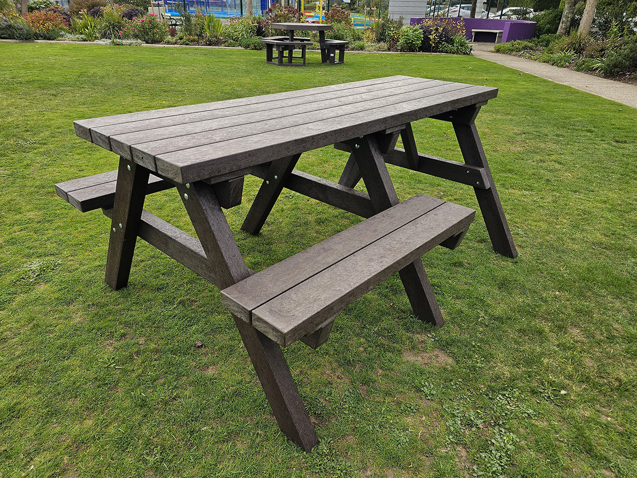Our picnic tables might look like timber – but unlike wood, they won’t rot, break or splinter. And they will also save you time and money, because they are longer lasting than timber, and are maintenance free. Our extensive portfolio of products takes all the Irish weather can throw at them: a quick wipe or pressure wash is all they need to come up looking like new. All of our picnic tables come ready-assembled and can be used straight away.