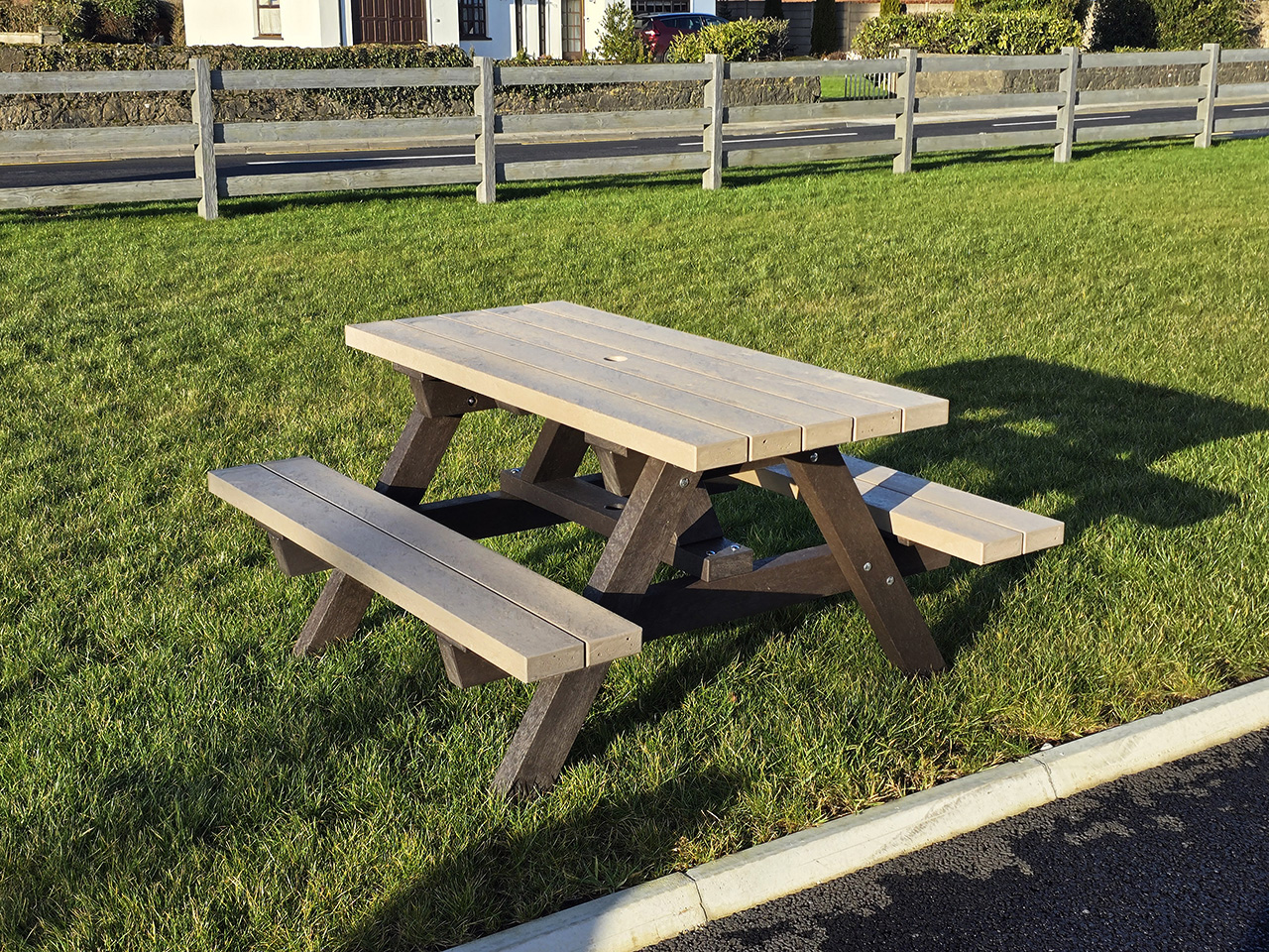 Our picnic tables might look like timber – but unlike wood, they won’t rot, break or splinter. And they will also save you time and money, because they are longer lasting than timber, and are maintenance free. Our extensive portfolio of products takes all the Irish weather can throw at them: a quick wipe or pressure wash is all they need to come up looking like new. All of our picnic tables come ready-assembled and can be used straight away.